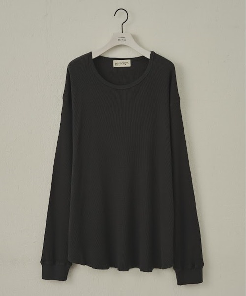 【深みのある風合いと快適さを兼ね備えた上質トップス】 凹凸感のあるワッフル素材にガス焼き加工を施すことで、独特の風合いと深みのある表情を実現したトップスです。 首元にゆとりを持たせた抜け感のあるデザインになっています。 厚すぎない生地感なので、秋から春にかけてロングシーズン使っていただけるアイテムです。 シンプルなクルーネックデザインは顔まわりをすっきり見せ、インナーとしても一枚着としてもレイヤードしやすくなっています。 リブ仕様の袖口が程よくフィット感をキープしながら締めつけすぎず、日常の様々なシーンにマッチする洗練された大人のカジュアルスタイルを完成させます。 裾をカットオフデザインにし、こなれた雰囲気を演出してます。 【商品ポイント】 ・ロングシーズン使用可能 ・着回し力抜群 ・顔周りをすっきり見せるクルーネックデザイン 【ガス焼きワッフル】 コットン100%のワッフルの表面をガス焼きし、毛羽をとり上品な表面感に仕上げています。 表面の凹凸によって肌への接地面が少なく、盛夏でも快適に着用していただけるシリーズです。 通常のワッフルに比べ肌触りが驚くほど柔らかく、それでいて高級感ある生地になっています。 【paradigm(パラダイム)】 イマを自分らしく生きたいという人々へ 素材と着心地にこだわり、高級感を感じる上質なデザイン かつロープライスを実現します。 カッコイイ大人のライフスタイルを根本的に支える シティユースな1mile、2mileウェアを提案します。 【ガス焼きワッフルシリーズ】 ・CPA2052206A0005 ガスヤキ天竺サルファダイスプレーT ・CPA2052206A0001 ガスヤキワッフルヘンリーネックTL/S ---------------------------------------------------- ■商品特徴 洗 濯 方 法 :洗濯機洗い可(弱) 裏 地 :なし 透 け 感 :ホワイトのみややあり 伸 縮 性 :ややあり 光 沢 感 :なし 生地の厚さ:普通 ---------------------------------------------------- ■素材 綿100% ---------------------------------------------------- ※着用、お取り扱いの際は、商品についている品質表示とアテンションタグを必ずご確認下さい。 ※商品タグに記載されている商品名がWEBでの表記名と異なる場合があります。 ※実際の商品と仕様、加工、サイズが若干異なる場合がございます。 ※照明の関係により、実際よりもやや明るく見える場合がございます。 またパソコンなどの環境により、若干製品と画像のカラーが異なる場合もございます。予めご了承くださいませ。 【お気に入り登録】してお得な情報をCHECK!! ・「商品のお気に入り登録」で再入荷通知や、ラストの通知、セール通知も受け取ることができます。 ・「ブランドのお気に入り登録」で新商品や再入荷など、お得な情報を受け取ることができます。