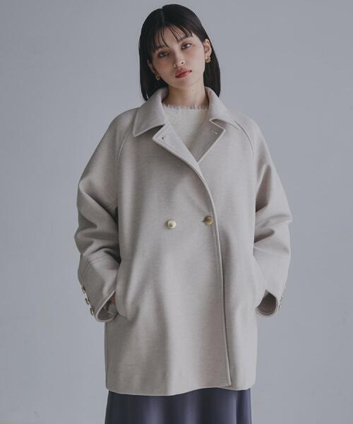 【デザイン&ディテール】スタンドネックのハーフコートは、W前仕様の金ボタンデザインが印象的な一着です。衿を寝かせることで、まるでピーコートのようなクラシカルな雰囲気にも変化し、着るシーンに合わせたスタイルチェンジが楽しめます。袖口にもボタンがあしらわれ、細部までこだわったディテールが全体の上品さを引き立てます。後ろ側は深いタックがたっぷりと入っており、自然なボリューム感を演出。フロントはしっかりとしたボタン使いで、きちんと感と存在感を保っています。さらに、スタンド部分には取り外し可能なタブが付いており、外して着用する際には、ネック後方のボタンで留めて調整できるなど、機能性も兼ね備えたデザインとなっています。【素材&カラーバリエーション】ジャージメルトン素材を使用しており、柔らかく快適な着心地とともに、適度なストレッチ性で動きやすさを実現。オートミールや杢グレーなど、色味が美しい洗練されたカラーバリエーションが上品な印象を引き立てます。【着こなしポイント】オフィスはもちろん、フォーマルなシーンやカジュアルな外出時にも活躍するアイテムです。シンプルなインナーやシャツとレイヤードして着るのもおすすめ。スカートやパンツのどちらのスライルにも合います。衿を寝かせてピーコート風に仕上げれば、さらにクラシカルな印象を演出でき、季節やシーンを問わず、着こなしの幅が広がる一着です。【仕様】・ポケット数:横×2・裏地あり※照明の関係により、実際よりも色味が違って見える場合があります。また、パソコン・スマートフォンなどの環境により、若干製品と画像のカラーが異なる場合もございます。モデル情報:身長166cm B72 W62 H86 着用サイズ:12(M)店舗へのお問い合わせ商品番号:040-94004●製品寸法:12(M):着丈77cm B122cm 裄丈80cm13(L):着丈79cm B125cm 裄丈82cm備考:重量:約1095g(サンプルサイズ)