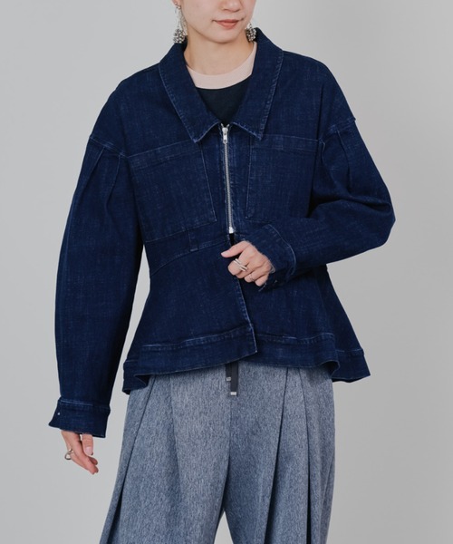 -25AW|DOLLUPOOPS-ハリ感×シルエット美で差をつける。甘すぎず、かっこよすぎない。バランス上手なデニムジャケット。【Material】通年使いやすい10.5ozの中肉厚デニムを使用。ノンウォッシュならではのハリ感があり、着込むほどに風合いの変化を楽しめます。シーズンレスで活躍する素材感です。【Design】ウエスト位置でシェイプし、裾はペプラム仕様にデザイン。ショルダー部分にはギャザーを施し、デニムながらも女性らしい立体感のあるシルエットに仕上げました。羽織るだけでスタイルにメリハリが生まれます。【Size】ウエストをシェイプしたラインが美しく、デニムの程よい硬さがシルエットをきれいにキープ。アームホールは広めに設計しており、インナーを選ばず袖通しもスムーズです。【Styling point】フロントを閉めてフェミニンな印象でも着用いただけます。ショート丈なので、ワンピースやボリュームボトムとのレイヤードスタイルとも好相性です。___________________________★商品のお気に入り登録 完売カラーの再入荷通知や、ラスト1点の通知、セールの通知も受け取ることができます。是非ブランドの”お気に入り登録”もご一緒にお願いいたします。 ※画像の商品は光の反射や角度により、実物と色味が異なる場合がございます。 また、表示のサイズ感と実物は若干異なる場合もございますので、予めご了承ください。 ※着用、お取り扱いの際は、商品についている品質表示とアテンションタグを必ずご確認ください。-DOLLUPOOPS | ドールアップウップス-【Add a little essence】ライフスタイルの多様化が進む現代変わり続ける今をとらえ、自分らしい感性を大切にする女性に向けて" より美しく" 毎日を" 彩る" ワードローブを。日常に調和しつつ、" 普通 " に少しだけエッセンスをたして、他にない特別な一品を提案します。-Instagram-公式インスタグラム【dollupoops.tevalt_official】※商品のサイズ感やご質問は【dollupoops.tevalt_official】のインスタアカウントDMにて承っております。お気軽にご相談くださいませ。