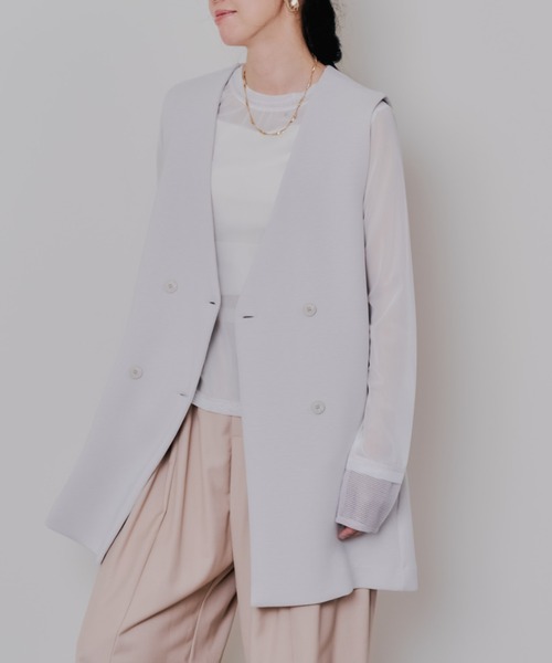 -25AW|DOLLUPOOPS- 秋冬レイヤードに欠かせない1枚。厚手のボンディング素材で、どんなトップスにもフィット。 【Material】厚手のボンディングを使用したベスト。伸縮性、キックバックに優れた素材です。 【Design】 ダブルの仕様となっており、Vネックはざっくりとした広がり。バックフリルには起毛した異素材を配備。 【Size】 オーバーベストのように厚手のニットやジャケットの上からでも着用可能なサイズ感となっております。 【Styling point】 抜け感のあるネック、アーム。タートルネックやノーカラーのブラウスをレイヤードするスタイリングがおすすめです。 ___________________________ ★商品のお気に入り登録 完売カラーの再入荷通知や、ラスト1点の通知、セールの通知も受け取ることができます。 是非ブランドの”お気に入り登録”もご一緒にお願いいたします。 ※画像の商品は光の反射や角度により、実物と色味が異なる場合がございます。 また、表示のサイズ感と実物は若干異なる場合もございますので、予めご了承ください。 ※着用、お取り扱いの際は、商品についている品質表示とアテンションタグを必ずご確認ください。 -DOLLUPOOPS | ドールアップウップス- 【Add a little essence】ライフスタイルの多様化が進む現代変わり続ける今をとらえ、 自分らしい感性を大切にする女性に向けて " より美しく" 毎日を" 彩る" ワードローブを。 日常に調和しつつ、" 普通 " に少しだけエッセンスをたして、他にない特別な一品を提案します。 -Instagram- 公式インスタグラム【dollupoops.tevalt_official】 ※商品のサイズ感やご質問は【dollupoops.tevalt_official】のインスタアカウントDMにて 承っております。お気軽にご相談くださいませ。