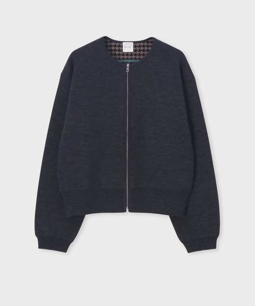 様々なスタイルにマッチする、落ち着いたカラーリングのジップアップジャケット。内側には、クラシックな千鳥格子柄の接結編み生地を使用し、程良い厚みに仕上げました。ちらりと見える千鳥格子柄が、シンプルなコーディネイトにもさりげない個性をプラス。すっきりとした丸首のネックラインは、フェミニンなコーディネイトにも合わせ易いデザインです。________________________[お買い物をお楽しみ頂くために]□商品のお気に入り登録完売カラーの再入荷通知やラスト1点の通知など、商品情報をお届けします。□ショップ・ブランドのお気に入り登録新商品や再入荷など、いち早くブランドの最新情報をお届けします。________________________