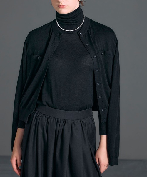 ほどよい透け感が美しいシアーニットカーディガンイタリア製の細く繊細な糸を使用し、手編みで丁寧に仕上げた上質なニットカーディガン。程よい透け感が軽やかさと女性らしさを演出し、レイヤードスタイルにもぴったりな一枚。コンパクトなサイズ感で、パンツにもスカートにも合わせやすいバランスです。フロントに並んだボタンとポケットがアクセントとなり、シンプルながらも洗練された印象に。一枚で着映えする、こだわりの詰まったカーディガンです。--------------------------透け感:ややあり裏地:なし伸縮性:あり光沢感:なし生地の厚さ:薄手--------------------------【モデルスペック】身長:173㎝、着用サイズ:F※照明などの関係により、実際と色味が違って見える場合がございます。予めご了承ください。商品の色味は、商品単品画像をご参照下さい。