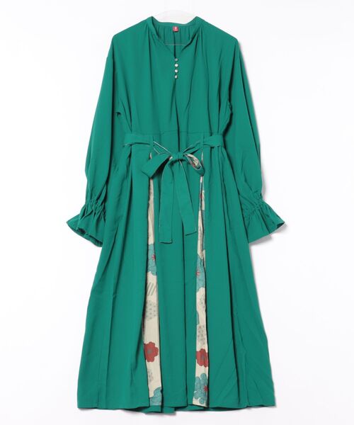 JAPANESE MODERN文明開化が起こった明治時代。西洋から洋服が流入し、街には洋装と和装が入り混じった異文化のコーディネートに身を包んだ人々があふれていました。その当時の鮮やかな色彩の組み合わせと、幸福の象徴である牡丹の花模様を取り入れました。……………………………………………………………< 文明開化時代を想わせる洋装スタイル >無地と花柄をレイヤード風に組み合わせたワンピース。着物の帯をイメージした無地×花柄のベルト付き。スタンドカラーとキャンディスリーブは、文明開化時代の洋装スタイルからインスパイアを受けたデザイン。牡丹と麻の葉モチーフの華やかな柄と、鮮やかな色展開が魅力の一枚です。・両サイドポケットあり。※こちらの商品は1点1点職人による手作りとなります。その為、生地の取り方により花柄の配置や色合いなど若干個体差がございます。(画像は一例です。)あらかじめご了承ください。※くるみボタンの配色は1点1点異なります。(画像は一例です。)あらかじめご了承ください。※屋外での撮影画像は、光の当たり具合で色味・カラーが違って見える場合がございます。商品のカラーは、スタジオ撮影の画像をご参照ください。Amina Collection Co.,LTD.