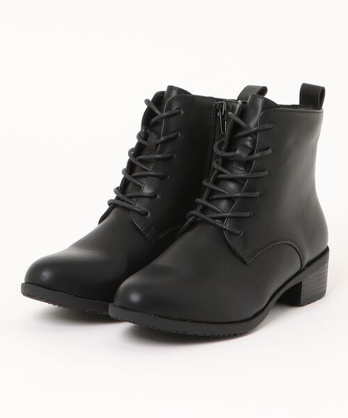 ベーシックなデザインと暖かく快適な履き心地で、毎日のキレイ見えを叶える「エブリキレイ」シリーズのレースアップブーツ。 柔らかなアッパー素材を採用し、締め付けが少ないソフトな履き心地◎ 幅広ながらすっきりとしたフォルムで、コーデに取り入れやすい使い勝手の良さが魅力。 また程よいヒール高で自然なキレイ見えを後押し♪ 滑りにくい底材に加え、太ヒールと返りのよい設計で、安定感のある歩きやすさを提供。 さらに裏起毛仕様で、つま先までふんわりあったかな履き心地♪ 編み上げで足に合わせてフィット調節が行え、一度調整したらあとはサイドジップで脱ぎ履きも簡単◎ 通勤・通学やプライベートのお出かけ、卒業式の袴スタイルなどにもおススメです! 【屈曲性】 返りのよいソールが歩行に合わせて曲がり、歩きやすい 【滑りにくい】 グリップ力を高めたソールで安定性を向上(路面状況により滑る場合もございます) 【幅広3E】 ゆったりワイド設計 ・素材:合成皮革 ・アウトソール:合成底 ・ヒールの高さ:約4.0cm ・ワイズ(幅):3E ・サイズ感:ゆったりめ(個人差がございますので目安です)