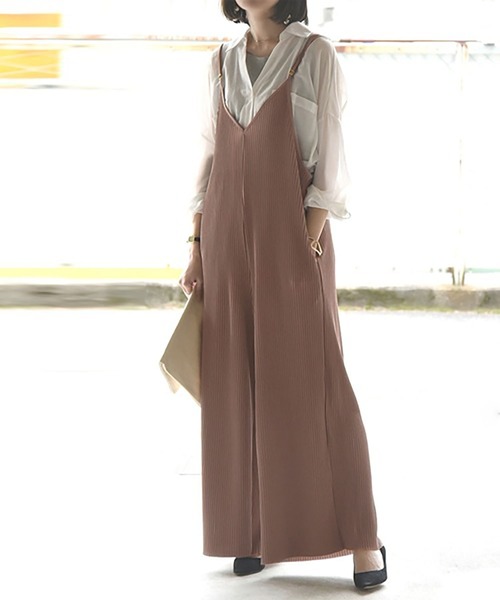 【ゆったり ストラップジャンプスーツ】リラックス感のあるワイドシルエットが魅力のジャンプスーツ。軽やかな落ち感のある素材に細やかなプリーツが施され、歩くたびに揺れる上品な動きを演出します。肩紐デザインで抜け感をプラスし、シーズンレスで着回しの効く一枚です。 【快適な着心地】ゆったりとしたシルエットながら、縦ラインを強調するデザインでスタイルアップ効果も期待できます。軽やかな素材感が肌に優しく馴染み、長時間の着用でも快適。体型を気にせず楽しめるのも嬉しいポイントです。 【コーディネート自在】インナーにシンプルなTシャツやリブトップスを合わせればカジュアルに、ブラウスやタートルネックを取り入れればフェミニンにアレンジ可能。小物次第でデイリーからお出かけスタイルまで幅広く対応できる万能アイテムです。 ※店頭及び屋外での撮影画像は、光の当たり具合で色味が違って見える場合があります。またご覧いただきますモニターや使用環境により実際の商品と多少色味が異なって表示される場合がございます。予めご了承をお願いいたします。★商品のお気に入り登録→【カートに入れる】右側の♡をクリック★ブランドのお気に入り登録→ブランドタグのページからお気に入りをクリック※ご注文いただいた予約商品のお届け時期の確認は、注文履歴ページより行えます。※セールは予告なく終了させていただく場合がございます。