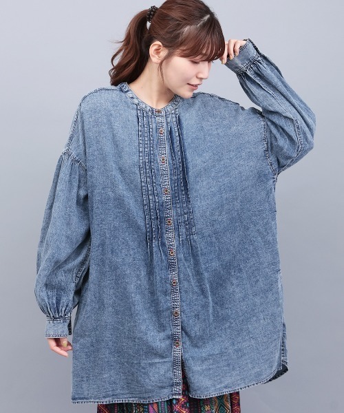 軽やかで涼やか♪インディゴの透け感が大人映えするシアーチュニック■デザイン柔らかく軽やかな綿100%ボイル素材を使ったシアーチュニック。前立てのタックが女性らしさを引き立て、ぽわん袖でほんのり甘さをプラス。ヒップまで隠れる丈感で体型カバーもでき、前開きデザインだから羽織りとしても活躍します。色落ち加工を施したインディゴカラーで、まるでデニムのような風合いを楽しめるのもポイント。■サイズ感レディースフリーサイズゆったりとしたシルエットで、体のラインを拾わずリラックス感のある着心地。ヒップをすっぽりカバーできる丈感で安心感があります。■素材感デニム見えするインディゴカラーながら、綿100%のボイル素材で驚くほど軽やか。透け感のある薄手の生地で、肌離れもよく涼しい着心地です。■スタイリングバルーンシルエットパンツやワイドパンツと合わせて、ゆるっと抜け感のある大人カジュアルに。インナーにタンクトップを合わせて羽織れば、軽快なレイヤードスタイルに仕上がります。■カラーブルー/インディゴ■お手入れ洗濯機可/ドライクリーニング ---------------------------------透け感:やや透ける伸縮性:なし裏地 :なし光沢 :なし生地の厚さ:薄手ポケット:あり---------------------------------【お取扱い上のご注意】この製品はインディゴ染料を使用しております。着用中の摩擦により色移りする場合がありますので淡い色の衣類やバッグと一緒に使用しないで下さい。・水洗いする際には色落ちする場合がありますので他のものとはて洗って下さい。濡れた状態で放置したり、他の物と重ねたりしないで下さい。・回転式乾燥機(タンブラー)は型崩れや収縮の恐れがあるためご使用はお避け下さい。・蛍光剤、漂白剤入りの洗剤は淡色の色を変化させる恐れがありますのでご使用はお避け下さい。洗い加工を施し独特の風合いを表現している為製品により多少色にばらつきがあります。・お洗濯の際には、洗濯ネットを使用して下さい。・アイロンの際には、当て布を使用して下さい。・デリケートな素材の為、極度な力が加わりますと滑脱する恐れがありますのでご注意下さい。【TITICACAのお買いものをお楽しみいただくために!】▼商品のお気に入り登録完売カラーの再入荷通知や、ラスト1点の通知、セールの通知も受け取ることができます。▼ブランドのお気に入り登録新商品や再入荷など、いち早くブランドのお得な情報を受けることができます!