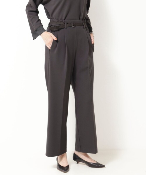 ◇25AW◇ MICO COULIER ラクしてきれい見え、ハイストレッチジョーゼットタックパンツ ◆Point ・しっかり感があり伸縮性の高いハイストレッチジョーゼット素材のタックパンツ ・定評のあるセンタープレス入りのセミワイドシルエットですっきり見え ・タック入りで気になるお腹まわりをきれいにカバー ・セットアップになるブラウスやジャケットと合わせてオケージョンにも対応 ・サテン地のベルト付きでINスタイルもこれ1着で決まる◎ ・しわになりにくく、ストレッチ入りで動きやすいデイリーに活躍するアイテム <同生地シリーズ> 5-0818-5-01-002《セットアップ対応》ハイストレッチジョーゼットブラウス 5-0818-5-05-002《セットアップ対応》ハイストレッチジョーゼットジャケット ---------------------------------------------------------- 透け感:なし 裏地:なし 伸縮性:あり 光沢感:なし 洗濯:手洗い可 ---------------------------------------------------------- 気になる商品は、お気に入り登録がオススメです! クーポン情報、入荷情報が通知されるようになります ---------------------------------------------------------- ●お取扱い上のご注意● 末永くご愛用頂くために、アテンションタグを必ずご確認の上、着用又はお取り扱い下さい。 ※店頭及び屋外での撮影画像は、光の当たり具合で色味が違って見える場合があります。商品の色味は、スタジオ撮影の画像をご参照下さい。 ※商品画像に関しては出来る限り忠実に表示出来るよう努めておりますが、お客様がご利用のモニターの設定及び特性により、実際の商品と比較し色味に若干の誤差が生じる場合があります。 ※製品洗い加工の商品は、多少の歪み、シワなどが見られたり、風合いやサイズ等が1枚1枚異なります。汗や雨等で濡れた時や、摩擦により色落ちし、他の衣料を汚すことがありますので(特に濃色のもの)ご注意ください。