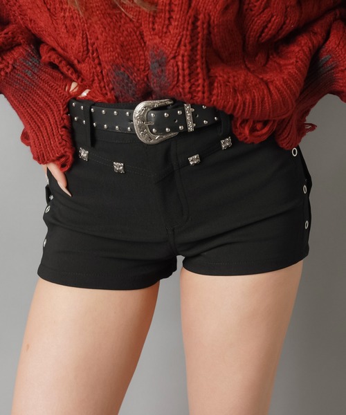 【ロマンスパンク×平成ギャルに刺さる★エッジを効かせた主役ショーパン】 ロマンスパンクや平成ギャルスタイルにハマる、スタッズデザインが目を惹くタイトショートパンツ。コンパクトなシルエットで、コーデ全体を引き締めつつ存在感もしっかりプラスしてくれる1本です。 ●おすすめポイント1:スタッズ使いでエッジの効いたデザイン フロントやポケット周りのスタッズがアクセントになり、シンプルなトップス合わせでも映える。 2:タイトシルエットでスタイルアップ ヒップラインをきれいに見せてくれるフィット感で、美尻&脚長効果も◎ 3:秋冬コーデにも使えるショーパン ニットやブーツ合わせで、秋冬でもショートパンツスタイルを楽しめるのが魅力。 【ファッション系統】・ROMANCE PUNK(ロマンスパンク)・平成ギャル ※掲載画像(商品、モデル着用とも)につきまして、撮影環境やお客様の閲覧されますパソコンや携帯電話キャリアによって、実際の商品とは多少異なった色に見える場合があります。 また表示のサイズ感も実物とは若干異なる場合もございますので、予めご了承ください。 ※タグ・バーコードのついたシールには、サイトのご案内と異なるカラー名が記載されていることもございます。ご了承ください。 - - - - - - - - - - - - - - - - - - - - - - - - - - - - 【「お気に入り登録」でお得な情報が届きます】 ・「商品のお気に入り登録」で再入荷通知、ラスト1点の通知、セール通知などを受け取ることができます。 ・「ブランドのお気に入り登録」で新商品、人気アイテムの再入荷など、お得な情報を受け取ることができます。 - - - - - - - - - - - - - - - - - - - - - - - - - - - -