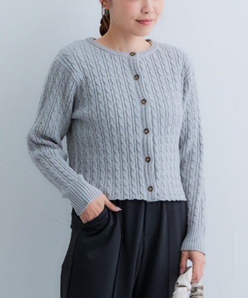 【150cm前後の小柄・低身長女性向けブランド-プッチージョ-】 145~155㎝の小柄女性対象のアパレルブランド。 レギュラーサイズをただ小さくしただけではなく、小柄さんの骨格と体型に合わせた独自サイズで設計。 小柄さんがストレスフリーにバランスよく着用できるアイテムを提案しています。細めのケーブル網みが特徴のショート丈ニット。 着丈が短いので、トップスとしても着用いただけます。小柄な体型に合わせたコンパクトなサイズで、すっきりとしたシルエットを実現。着丈や袖丈が絶妙に調整されており、バランスの取れたスタイルに。トラディショナルなケーブル編みが、クラシックでありながらもどこかモダンな印象を演出。肌触りも柔らかく、ストレスフリーな着心地です。寒い季節も暖かく、春先や秋にもぴったり。カジュアルなデニムスタイルから、フェミニンなスカートまで幅広くコーディネートが可能。シンプルながらも、あなたの個性を引き立てる一着です。 <仕様> レーヨン50%・ポリエステル30%・ナイロン20% 透け感:なし ※色によって透け感が異なる場合があります。 伸縮性:あり 生地の厚み:普通 光沢感:なし 裏地:なし ポケット:なし 季節:春秋向き シルエット:普通 <洗濯方法> 手洗い ■キーワード 小さいサイズ、プッチージョ、プチ、petitjo、Petitjo小柄、小さい、低身長、きれいめ、きれカジ、秋、ショート丈、ニット、羽織、前開き、ケーブル、コンパクト、春ニット、秋ニット、洗える、着回し、重ね着、カラーニット、色物、デートコーデ、お出かけコーデ、スタイルアップ、華奢見え、洗濯OK、フェミニン、