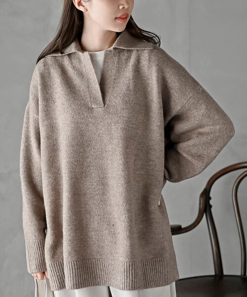 ★2025/AW NEW★ 大人カジュアルにぴったりな襟付きニット カジュアルでいてきちんと感もある襟付きのニットトップス。 大きな襟は小顔見せにも効果を発揮してくれます。 首元のレイヤードも楽しめるスキッパーカラー。 サイドの長めスリットがこなれ感のある装いを演出します。 起毛感のあるもっちり柔らかで暖かなミドルゲージニット。 ゆったりとしたシルエットでラフなカジュアルスタイルが楽しめます。 裏地なし 伸縮性あり 中厚 ポケットなし 編み加減や染めの具合でデザインやサイズ等異なる場合もございます 洗濯:洗濯機使用可(ネット使用) ▼お気に入り登録でお得がいっぱい▼ ~商品をお気に入り登録~ 再入荷・ラスト1点などの通知を受け取ることができます! ~ブランドをお気に入り登録~ 《rps》の新商品・再入荷情報をいち早くお届け!