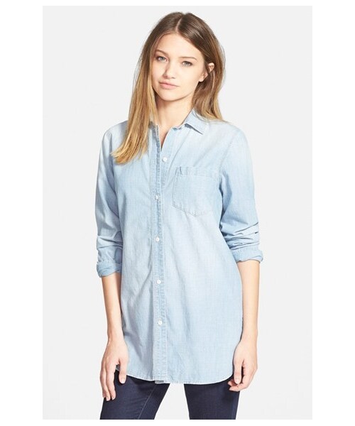 For the girl who prefers flats and the casual elegance of soft chambray cotton, we have the perfect shirt for you. Cut in a chic, borrowed-from-the-boys fit, this classic style comes with a long shirttail hem and undeniable appeal. 28 1/2" length (size Medium). Front chest pocket. Single button cuffs. Back yoke with box pleat. Shirttail hem. 100% cotton. Machine wash cold, tumble dry low. By Madewell; imported. t.b.d.