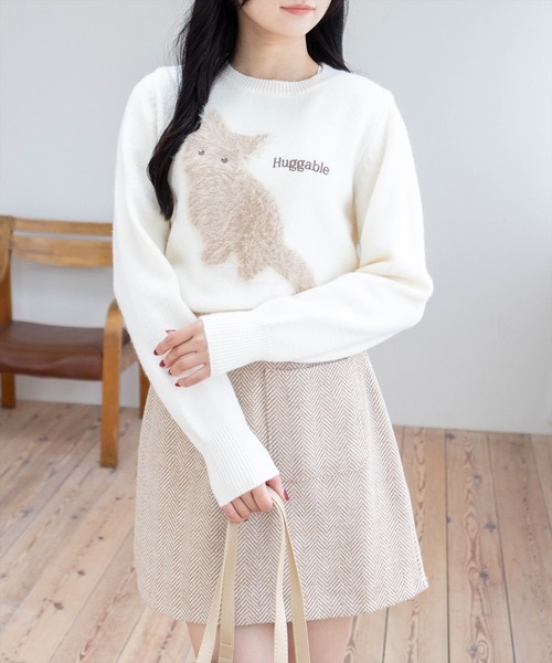 遊び心と着回しやすさを両立!ネコフェザー長袖ニットトップス【デザイン】モチーフ部分だけフェザー素材を使用した、遊び心たっぷりのニットです。立体感のあるデザインが、コーデにさりげない可愛らしさをプラスします。シンプルなシルエットで、合わせやすさも抜群です!【素材感】着心地が柔らかいアクリル素材伸縮性:あり/ 透け感:IVのみ若干あり/ 裏地:なし 水洗いによる洗濯不可 / ドライクリーニング可【コーディネート】ミニスカートと合わせれば、ガーリーで愛らしいスタイルになっておすすめです♪デニムとの組み合わせも◎カジュアルな中に可愛さが引き立ちます。フレアスカートと合わせれば、ふんわりとしたフェミニンコーデが完成します!【※お取り扱い上のご注意】1:モニター環境等により実際の商品と多少色味が異なって表示される場合がございます。予めご了承下さい。2:屋外で撮影された商品は、天候により多少実際のカラーと異なる場合があります。商品のカラーはトルソー(マネキン)の商品画像をご参照ください。3:濃い色の商品は、お洗濯や摩擦等による移染にご注意ください。4:末永くご愛用頂く為に、アテンションタグ・洗濯ネームを必ずご確認の上、着用又はお取り扱い下さい。5:生産時期により、色、サイズ、デザイン、素材の質感が多少が異なる場合がございます。あらかじめ御了承下さいませ。