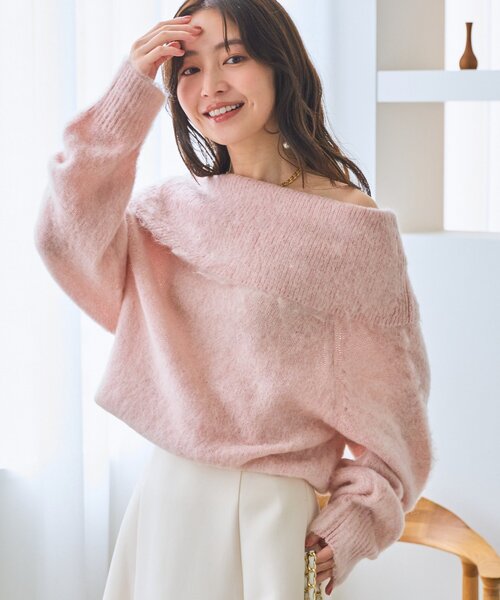 ふんわり素材で女子力UPするオフショルニット●デザイン女性らしさが詰まった、毛足長めのふんわりオフショルニット。ふわふわとした素材感が、見た目にも着心地にもあたたかさをプラス。柔らかな肌触りで着心地も抜群、自然と女子力を高めてくれる一枚です。程よいゆとりのあるシルエットと、ボリューム感のあるスリーブが大人の抜け感を演出。デコルテを美しく魅せるオフショルデザインで、女性らしさを引き立てます。カジュアルにもフェミニンにも着こなせる旬の一着です。●ポイント・ふんわり柔らかい質感・デコルテをきれいに見せるオフショルデザイン・程よいボリュームスリーブ・着回し力抜群●おすすめのコーディネート光沢のあるスカートなど素材感のあるボトムスと合わせると、ふわふわ素材が際立ちます。スカートからパンツまで幅広く合わせられ、すっきりしたシルエットのボトムスでスタイルアップも◎デニムで大人カジュアル、タイトスカートでフェミニン、ワンピースとのレイヤードもおすすめです。洗濯方法:ドライクリーニング透け感:なし光沢:なし裏地:なし生地の厚さ:厚め伸縮性:あり#cate001