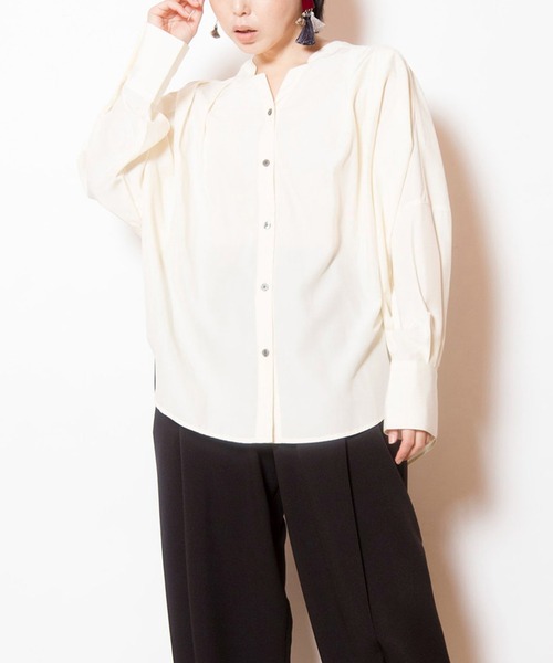 Autumn Winter collection緩やかなコクーンシルエットを描き、キーネックで女性らしさと小顔効果をプラス。カジュアルからオフィススタイルまで様々なシーンに対応。===========================透け感: 僅かにあり(IVORY)伸縮性: なし光沢感: 僅かにあり裏地: なし素材について: 表面にハリがありながらも、柔らかく落ち感のあるしなやかなブラウス地===========================【洗濯表示】 洗濯機可■商品のお気に入り登録クーポンやタイムセール、再入荷通知やラスト1点などお得な情報を受け取ることができます。ご登録をお忘れなく◎