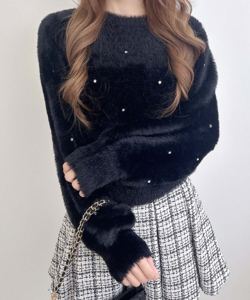 【きらきらふわふわ♡かわいすぎるフェザーニット】 ▼Design いつまでも触っていたい大人気のふわふわフェザーニットに、トレンドのきらきらビジューがつきました♡ ふわふわのフェザーニットで季節感たっぷりのフェミニンコーデが完成。 動く度にキラキラと光を放つビジューを散りばめた華やかなアイテムです。 なめらかな肌触りで着心地も快適。 やわらかくて防寒もばっちりな生地感です♪ 程よくシンプルなデザインだから、どんなテイストのコーディネートにも合いやすく、秋冬に大活躍の予感! ▼Styling ミニスカートなどかわいいボトムスと合わせればガーリーなコーデに♡ デニムやパンツなどと合わせれば、大人カジュアルなコーデに。 1枚ではもちろん、ブラウスなどを合わせたレイヤードスタイルも◎。 程よい裾丈でボトムスを選ばず、バランス良く合わせられます。 ・ニット製品のため生地に伸縮性があり、サイズに若干の誤差が生じる場合がございます。予めご了承くださいませ。 【以下ピンク参考。カラーにより多少の誤差あり】 ・透け感:やや透ける ・伸縮性:あり ・生地の厚さ:普通 ・裏地:なし ▼Recommend ・フェザー ・ビジューニット ・セーター ・大人カジュアル ・大人ガーリー ・韓国ファッション