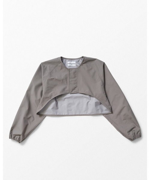 ■スリーレイヤー生地のレイヤードジャケット。スウェットやシャツ、ジャケットの上と様々なアイテムとのレイヤードによりスタイリングのアクセントを生み出すショート丈のジャケットです。撥水性の高いスリーレイヤー生地を使用し、実用性も兼ね備えた一着。袖にゆとりを持たせた独特のシルエットが特徴となっています。