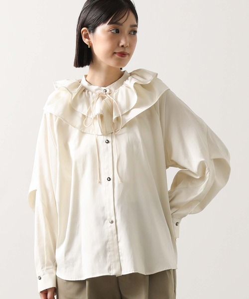 【LalliaMùラリア・ムー】から、着こなしの幅が広がるマルチWAYのデザインブラウスをセレクト。上品な艶がラグジュアリーなムードのブラウス。セットになった取り外し可能なフリル衿が華やかでフェミニンな印象をプラス。フリルの分量はキャザーの寄せ方で調節可能。肩からバストにかけて巻いたり、腰に巻いてペプラム風デザインにしたりとアレンジ自在。ブラウス単体でもシンプルなインナーとして重宝します。ホームケア可能で、きれいめからモード、カジュアルまで着回し力も高いアイテムです。【LalliaMù/ラリア・ムー】”あなたと一緒に生きる服”ライフスタイルが多様化し、さまざまなタスクを抱える女性が増えている時代。ラリア・ムーはオートクチュールのような立体裁断という手法を用いて、今の女性たちが心地よく着られる服を作ります。※商品画像は、光の当たり具合や使用しているパソコンのモニターやスマートフォン等の設定により、現物と画像の色味が若干異なる場合もございます。予めご了承ください。【 お買い物をもっと楽しんでいただく為に 】▼商品のお気に入り登録▼完売カラーの再入荷や、ラスト1点、セールの通知をお知らせします。割引クーポンの発行などお得な情報も!▼ブランドのお気に入り登録▼新商品や再入荷など、いち早くグレディブリリアンのお得な情報を受け取ることができます! 【Gready Brilliant】「ほどよい存在感」を大切にする大人の女性のためのセレクトショップ。