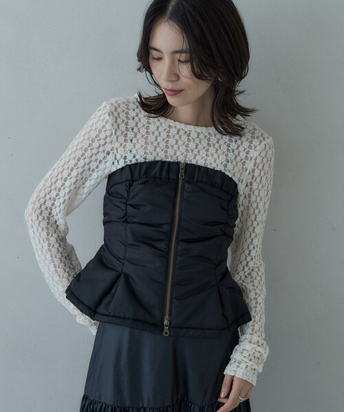 Design Point遊び心のあるMA1デザインのビスチェ。ボリューム感のある中綿素材を使用したアイテムで、ジップアップフロントがアクセントに。Styling Pointスカートやスラックスと合わせることで、メリハリの効いたスタイリングが完成。インナーの色や素材を変えることで、さまざまなスタイルを楽しむことができます。※着用しているインナーは本商品ではございません。モデル身長:170cm 着用サイズ:38(M)*****************************気になるアイテムは【お気に入り登録】がおすすめ!気になるアイテムのページにある「ハートマーク」をクリックして簡単に追加できます。登録すると、再入荷通知やお値下げ情報をメルマガにてお知らせします。マイページにてお気に入り一覧もチェックできます。*****************************※照明の関係により、実際よりも色味が違って見える場合があります。また、パソコン・スマートフォンなどの環境により、若干製品と画像のカラーが異なる場合もございます。店舗へのお問い合わせ商品番号:523-44007●製品寸法:36(S):着丈34cm B83cm W83cm 裾幅62cm備考: