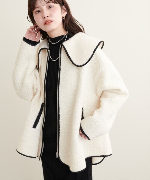 【2025AW natural couture】【WEB限定】ビッグ衿ループブークレショート丈コート■Designビッグ衿と程よいボリューム感がトレンドライクなボアコート。ボリューム感があり、しっかりとした暖かさを与えてくれます。寒い季節にコーデを彩る主役級のアイテムです。フロントのジップをしめてもきれいにお召しいただけます。■Stylingゆったりとしたサイズ感で、厚みのあるトレーナーやニットも合わせて◎スカートやワンピース、デニムなど幅広いテイストでお使い頂けます。ボリュームのあるアウターなので、ナロースカートやIラインワンピースで、すっきり見えもおすすめです。■Fabricもこもことした暖かみのある生地感。※補足 重量約600g====================透け感:なし裏地:なしポケット:あり伸縮性:なし光沢感:なし生地感:暖かみのある生地感====================※着用、お取り扱いの際は、商品に付いている品質表示とアテンションタグを必ずご確認ください。【お気に入り登録でお得な情報がいっぱい】・「商品のお気に入り登録」で再入荷通知や、ラスト1点の通知、セール通知をいち早く受け取ることができます。・「ブランドのお気に入り登録」で新商品や再入荷など、お得な情報を受け取ることができます!※店舗の入荷時期は商品によって異なります。店頭の在庫状況につきましては各店舗にてお問い合わせください。※撮影時の光の関係で、画面上の画像と実際のお色とでは若干の色差が生じる可能性がございます。また、ご覧いただいているモニター画面や、お使いのブラウザによっても、お色の違いがございますことをあらかじめご了承くださいませ。202509192025AW_natu25AW