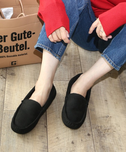 【Fin 2025 Autumn collection】■もこもこフェイクファーが足元を暖かく彩る■もこもこのフェイクファーがシーズンムードを盛り上げるFin(フィン)のフェイクファーモカシンが登場しました。しっとりとしたフェイクスエード素材にフェイクファーがマッチしていて大人可愛い足元を演出します。程よく丸みを帯びたフォルムは足をしっかり包み込む優しい履き心地。■どんなシーンにも大活躍の予感■中敷きにはフェイクファーがつま先までしっかり詰まっているので冬でも暖かいです。とても軽いので長時間のお出掛けにも大活躍の予感。デニムやワイドパンツでカジュアルに合わせるのはもちろんですが、スカートにソックスを合わせてレディスタイルに合わせるのも◎。どんなコーデにもすんなり馴染むので一足持っていると重宝しそう。お気に入りのカラーをチョイスして足元コーデをアップデートして下さい。■低反発スポンジ入り(低反発スポンジを使用することにより歩行時の衝撃をやわらげます。)*低反発スポンジ・・・圧力を分散し、包み込む様なクッション感が特徴です。スタッフによるサイズ感■普段のサイズ:Lサイズ 足幅E(普通)■着用サイズ:Lサイズ■感想:普段はLサイズを履いていますが、素足やストッキング合わせでちょうど良いサイズ感です。ソックスで合わせても窮屈になることはなかったため、普段のサイズで問題ないと思います。フェイクファーの素材は暖かく、足当たりがとても良いので素足で履いても足先が痛くなってしまうことはありませんでした。シューズ自体がとても軽く、長時間でも安心して着用することができそうです。※上記は弊社スタッフの個人的な感想になります。お客様により感想が異なりますため、あくまで参考としてご覧下さい。<サイズスペック>Sサイズ/アッパー幅:約16.0cm ソール幅:約7.1cm 重さ:約126gMサイズ/アッパー幅:約16.3cm ソール幅:約7.3cm 重さ:約132gLサイズ/アッパー幅:約16.6cm ソール幅:約7.5cm 重さ:約134gLLサイズ/アッパー幅:約16.9cm ソール幅:約7.7cm 重さ:約137g・サイズスペックについてはFin独自の方法により採寸しております。・同一商品でも個体差が生じるため、採寸内容に若干の差が生じる場合がございます。