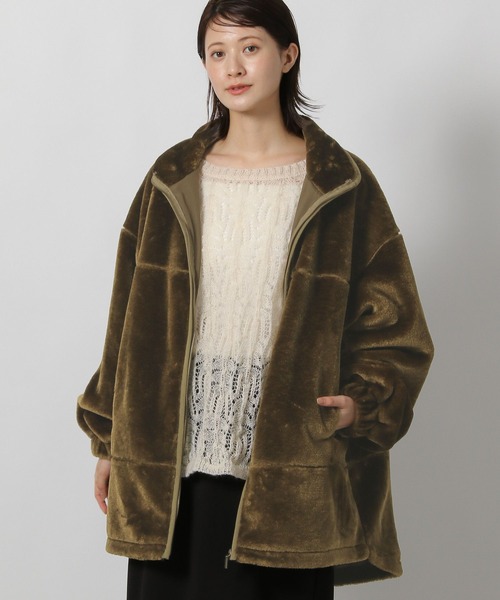 肌触りの良いボア素材のブルゾン。袖や身幅にゆとりがあるので厚手のニットやスウェットも着やすいデザインの1枚です。襟元はスタンドデザインで立てて着ることもでき、裾にはドローコードも付いているのでシルエット変化も楽しめます。【素材】肌触りが良くソフトで温かみのあるボア素材。【スタイリング】ゆとりのあるシルエットなのでニットなど合わせるインナーを選ばずスタイリングできます。日常使いのアウターとしてもおすすめ。