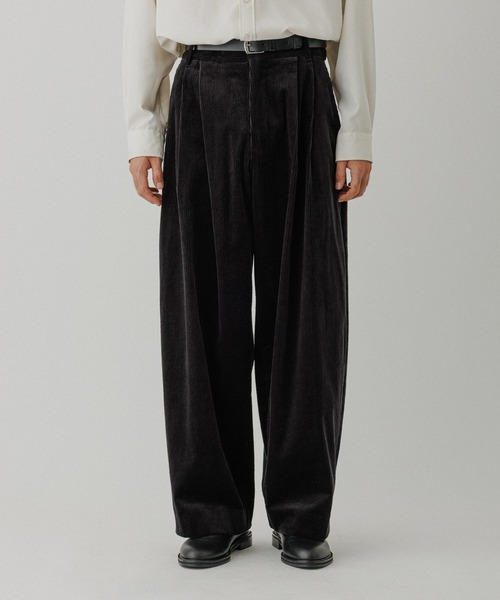 立体感ある畝でスタイリングに深みを、リラックス感と存在感を兼ね備えたコーデュロイワイドパンツ【素材】・中コール(8ウエール)の畝がやや太めのコーデュロイ素材※ウエール数は1インチ(約2.6cm)あたりの密度で計算・コール天とサッカーの2つの組織を組み合わせた特殊な織り方・表情感が豊かで、着こなしのアクセントになる1本【デザイン・シルエット】・横に広がるワイドバギーシルエットで、太めのラインを楽しめる1本・2タックのアウトタック仕様で、腰回りにゆとりを持たせた快適な穿き心地・コーディネートに取り入れるだけで、こなれた大人のリラックス感を演出【推奨サイズ】サイズM:身長~175cmサイズL:身長176cm~※標準体型を基にした目安になります。