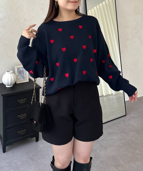 ハート刺繡が大人可愛く着こなせるスウェットライクニット ●配色のハート刺繍がアクセントに! ●程よいサイズ感なので色んなシルエットのボトムスを合わせても相性抜群◎ ●丈感も長すぎずタックアウトでも綺麗に着こなしていただけます ●伸縮性もありやわらかい生地感◎ ハート/ニット/刺繍/ ハート刺繍 / -------------------------------------------------------------- 生地の厚さ:やや厚い 伸縮性:あり 透け感:なし 裏地:なし 洗濯方法:ご自宅で手洗い可 -------------------------------------------------------------- ※商品画像はサンプルにて撮影をしておりますので、 実際の商品とは色味や仕様・サイズ等が異なる場合がございますので あらかじめご了承ください。 ※商品のお取り扱いに関しましては、商品に付属の アテンションカード、洗濯ネームをご覧ください。 ※撮影場所やお使いのモニター環境により若干お色味が 異なる場合がございます。 特にロケの撮影では明るく見える傾向にございます。 ※サイト上ではフリーサイズの表記ですが、商品タグには Mサイズと表記されている場合がございます。 その場合、ワンサイズでのご用意となりますのでサイズミス などではございません。詳しいサイズはサイズスペックを ご確認いただきますようお願い致します。 ※サイト上でのカラー名とお届けした商品に記載されている カラー名が異なる場合がございますので予めご了承ください。 <返品・キャンセルについて> ・着用・洗濯後の返品は致しかねます。 ・商品到着後、着用前に商品を確認して頂きますようお願い致します
