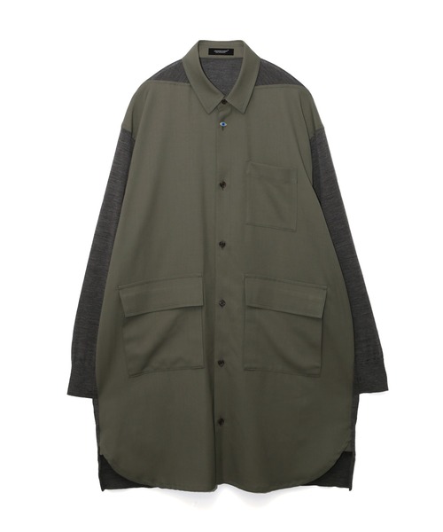 2025Autumn-Winter Men’s COLLECTIONポリエステル・ウールストレッチツイルシャツウールニット切り替えアイモチーフボタンフロントにパッチポケットとフラップポケット