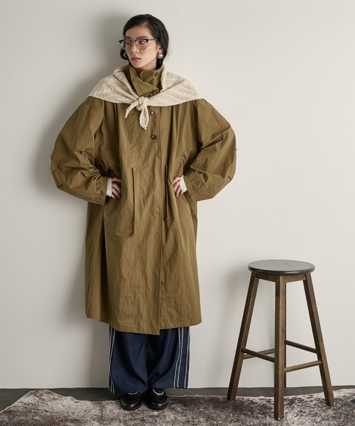 THE YOn 2025 Autumn Collection 雰囲気のあるロングジャケット 【Design】 オーバーサイズでこなれた雰囲気に仕上げた、ロング丈のミリタリージャケット。 スタンドネックや後ろウエストを絞れる仕様で、着こなしのアレンジを可能に。 フォルム感のある袖など、ラインにも表情を持たせ奥行きを演出。 デザインを散りばめながらも、カジュアルな生地感で気張らず羽織れる一着に。 【Styling Point】 キャップやスニーカーなどテイストの近い小物合わせはもちろん、レースやフリルなどで甘さをプラスするのも◎ 中に着込めるオーバーサイズなので、温度感に合わせてインナーを変えることで長く着用出来ます。 ----------------------------- 裏地:なし 光沢感:なし 透け感:なし 伸縮性:なし 生地の厚さ:普通 ----------------------------- 【お買い物をお楽しみいただく為に】 ▼お気に入り登録をオススメ致します。 『♡』をクリックして下さい。 ・《商品のお気に入り登録》で再入荷通知や、ラスト1点の通知、セールの際の通知も受け取ることができます。 ・《ブランドのお気に入り登録》で新作商品や再入荷など、お得な情報を受け取ることができます。 【ATTENTION】 ※画像の商品はサンプルです。 実際の商品と色味、仕様、加工、サイズ、素材等が若干異なる場合がございます。 ※撮影場所やお使いのモニター環境により若干お色味が異なる場合がございます。 ※製品によっては染料の特性上、湿った状態や汗をかいた状態での長時間の放置、または摩擦により、他のものへ色移りする恐れがありますので、着用時にはご注意下さい。 ※風通しがよく、湿気の少ない日の当たらない場所で保管して下さい。 ※また製品加工上、お手元に届く際に匂いが生じる場合がありますが、 ご使用を続けていく事により匂いは軽減されます。