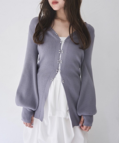 フロントに並んだホックが印象的なリブニットカーディガン。 ボディラインをきれいに拾ってくれるリブ編みが女性らしいシルエット。 フロントのホックはアクセサリー感覚で映えるディティールです。 シルバーのホックが動くたびにさりげなくきらめきます。 やや深めのVネックで顔まわりをすっきりと見せてくれます。 ボリュームスリーブが全体に柔らかさと華やかさをプラスします。 手元にたぽっとたまる袖のシルエットが愛らしい印象に。 薄すぎず厚すぎない生地感でロングシーズン活躍します。 インナーを変えるだけで表情が変わる万能アイテム。 キャミソールと合わせれば抜け感のあるコーデに。 ブラウスやシャツをレイヤードすれば秋冬らしいクラシカルなコーデが完成します。 ヒップが隠れる程度の長めの丈感で体型カバー×くびれを美しく見せてくれるので細見え効果抜群‼ ホックの下3つほど開ければ目線が上半身を短く見せてくれるので脚長効果も◎ ・サムホール付き 1枚持っておくとコーディネートの幅が広がる便利なアイテムです。 着用の商品写真は、サンプルでの撮影のため、色味や加工の見え方に若干の違いがある場合がございます。予めご了承ください。 また、お使いの端末やモニターによってもお届けの商品と多少の差が生じる可能性がございます。