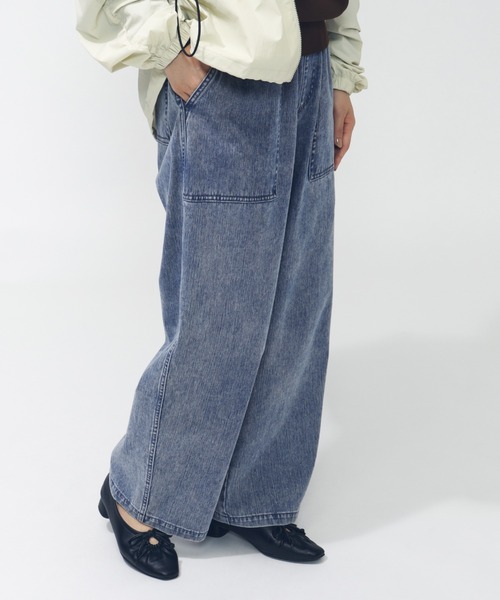 軽くてストレッチ性の高いデニムワイドパンツ。デニムはニットやスウェットなどどんなコーディネートにも使いやすい2色展開。ウエストはゴム仕様で圧迫感がなく、ストレッチ性が高いのでらくに伸びて履き心地も◎