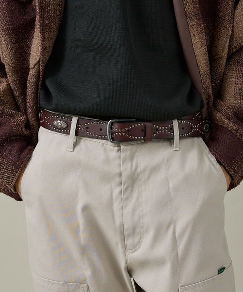 コンチョモチーフとシルバースタッズを贅沢にあしらった、Y2Kファッションと相性抜群のデザインベルト。 シンプルなコーデも、この1本をプラスするだけで一気にトレンド感のあるスタイルにアップデートできます。 ヴィンテージライクな雰囲気で、デニムやカーゴパンツにはもちろん、ミニスカートやワンピースのウエストマークにもおすすめ。 ユニセックスで使えるので、カップルでシェアしたりリンクコーデにも◎ ・コンチョ×スタッズでY2K感を演出 ・シンプルコーデのアクセントに最適 ・ユニセックスで楽しめるアイテム ■コーディネート ・デニムに合わせてアメカジ王道スタイル ・ワイドパンツのウエストマークにしてストリート感をプラス ・オーバーサイズシャツやジャケットの上から巻いてウエストアクセントに#コンチョベルト #スタッズベルト #Y2K #ギャルコーデ #ウエスタン #ヴィンテージライク #レディースファッション #ユニセックス #アクセント小物