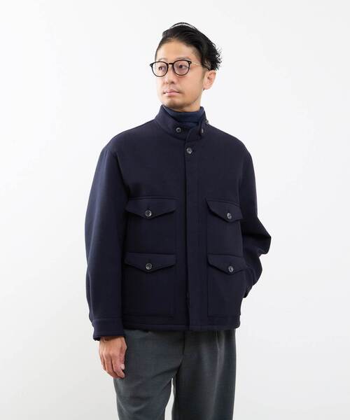 <デザインの特徴> ヴィンテージ感漂う見た目とは裏腹の現代版機能素材で仕立てたクルーザージャケット。 クロップド丈とリラックスボディーのバランスは幅広いスタイリングにマッチする1着です。 伝統的なディティールにオマージュしたデザインはトラディショナルを感じさせるアイテムです。 <素材について> コットンビエラ素材にウレタンをボンディングしたことで、非常に軽い肉厚感になり、防風性、保温性も向上した、ヴィンテージ風の重厚感のある見た目の現代版機能素材です。 <サイズ感・シルエットの特徴> バランスよくゆとりを持たせたシルエットです。 ほどよいトレンド感もありながらスタイリッシュで大人っぽく着れるサイズ感に仕上げています。 <サイズ表記> 2=S、3=M、4=L
