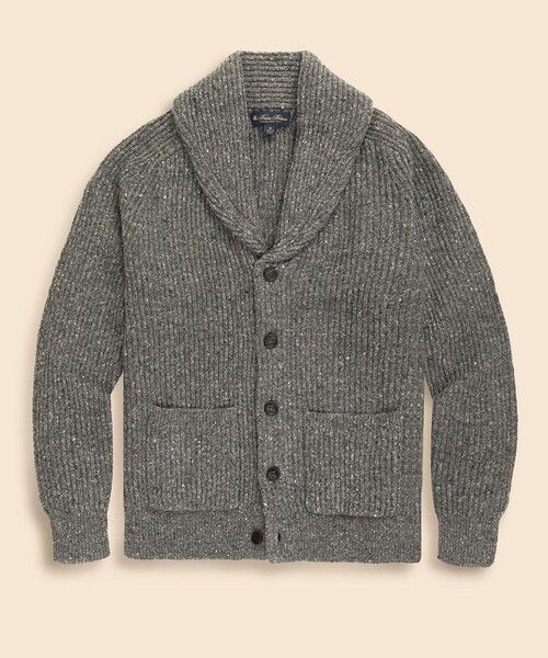 多色のネップ(節)が特徴的なウール糸を使用したショールカラーカーディガンざっくりとした風合いながらも、軽やかで柔らかい着心地。複雑なネップの色合いが、上質かつ温かみのある表情を生み出しています。襟付きなのでシャツやタートルネックとの相性も良く、秋口には軽いアウター代わりとしても重宝するアイテムです。ニットタイや、ウール素材のタイを用いた、クラシックなタイドアップスタイルもおすすめです。■ボタンには、シーズンテーマのひとつ<Myopia Hunt Club>を象徴する馬の刻印入り。■Myopia Hunt Club(マイオピア・ハントクラブ):マサチューセッツ州にある歴史あるカントリークラブです。元々はキツネ狩りを中心とした乗馬クラブとして1882年に設立され、現在ではゴルフやポロ、テニスなど多岐にわたるアクティビティを楽しめる、格式の高い会員制名門クラブとして知られています。このシーズンテーマではハンティングルックに多く用いられるイエロー、レッド、ミリタリーグリーンなどのカラーパレットとガンクラブチェック、馬やキジなど狩猟に所縁のあるアニマルモチーフを大胆に取り入れた、伝統と格式を纏うスタイルを提案いたします。■information■・商品のお気に入り登録お気に入りアイテムの再入荷・ラスト1点や、セールの通知など商品情報を受け取ることができます。・ブランドのお気に入り登録新商品やセール、ショップのトピックスなどいち早くブランド情報をお届けします。