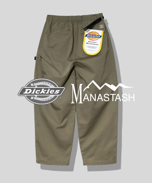 ☆MANASTASH☆ DICKIES EXTRA MILE TUCK PT【MANASTASH/マナスタッシュ/×DICKIES/ディッキーズ/EXTRA MILE TUCK PANTS】Dickiesコラボレーションアイテムが登場。Dickiesの代名詞とも⾔えるT/Cツイルを使⽤。T/Cツイルは耐久性と強度に優れており、シワにもなりにくく、洗濯による影響も受け難い、ワークウェアに最適な素材です。ウエストはウェビングベルト+ゴムのイージー仕様で、ストレスフリーな履き⼼地。さらにManastashロゴを⼊れたFIDLOCKマグネットバックルを使⽤し、⽚⼿でウェストサイズの調整とバックルの付け外しが可能。計8個のポケットを備えた抜群の収納⼒。ベンチレーション構造で通気性抜群な股仕様。バックの右腰部分にボディカラーにマッチしたコラボラベルが付いています。同素材のジャケット(962597060001)とセットアップで着⽤可能です。■EXTRA MILE=一歩先、更に先この新ラインは通常コレクションの「日常」で着るウェアに比べて、一歩先の新しい場所(非日常)へ踏み出せるウェアとして提案しています。 通常ラインよりも素材、スペック、デザインを更にアップデートしたコレクションラインです。※着用、お取り扱いの際は、商品についている品質表示とアテンションタグを必ずご確認下さい。【Dickies/ディッキーズ】1920年代、Dickiesの共同創業者であり、いとこ同士であるC.N.ウィリアムソンとE.E.ディッキーがワークウェアの生産を開始。2人は全米各地の「働く現場」を回り、農夫や鉱夫などそれぞれの仕事に必要な作業着の特性を調査。労働者のニーズに合わせ様々な工夫が施された製品は、またたく間にアメリカ全土に深く浸透していきました。90年代には、全米にストリートカルチャーのブームが到来。西海岸のスケーターたちが丈夫で価格も手ごろな「874」を愛用したことで、各分野のアーティストへも浸透。人気は日本や世界各地のカルチャーシーンへと飛び火し、やがてDickiesはワークウェアとしてだけでなく、ファッションブランドとしての地位も確立します。【MANASTASH/マナスタッシュ】1993年設立の米国シアトルのアウトドアブランド。その理念は、環境に優しい素材、例えばヘンプやリサイクルフリースを使用して最高のウエアとギアを作ることです。偉大なるカスケード山脈から駆け落ちるマナスタッシュ山高原ではスキー、トレッキング、マウンテンバイク、ラフティング、カヤックなどワイルドで多様なアウトドアスポーツが楽しめます。フリーダムをベースとしたライフスタイルを代表する、実用的でスタイリッシュ、そしてハイクォリティなウエア。山、川、そして道…MANASTASHは、自然環境の中で情熱を追いかけているすべての人々と繋がっています。