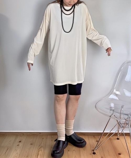 \光沢と透け感が上品。着るだけで大人の顔のシンプルトップス/ 程よい透け感と光沢感のあるシアーベロアが、日常にさりげない女性らしさをプラス シンプルだけど「今年らしいトレンド感」もある1枚で着るだけで旬顔に たっぷりゆとりのあるオーバーサイズでゆるっとラフに着られるのにベロア特有の上品な光沢感で高見え ■デザイン 抜け感のある程よい飽きのネックラインと、ゆるっとしたオーバーサイズのシルエットが気になる体型をふんわりカバー ストンと落ちるシルエットで着痩せ効果も期待できます 深めのラウンドネックは、デコルテを美しく見せ、女性らしさをプラス 長めの丈感は、気になるヒップラインを隠してくれるのも嬉しいポイントです ■素材 ポリエステルをメインにしたほのかな透け感を光沢感が魅力のシアーベロア 柔らかく、落ち感があり肌にやさしくなじむ上質感のある素材です ベロア表面の生地感にもこだわりふんわり軽く仕上げました ご自宅で手洗い可能なので、お手入れも簡単。毎日気兼ねなく着られるのが嬉しいポイントです ■おすすめのスタイリング ・キレイ目にきるなら・・・ シアーベロアトップスにジャケット、テーパードパンツ+パンプスで上品なお仕事スタイルにも活躍 ・カジュアルに着るなら・・・ シアーベロアにワイドのデニム、スニカーをあわせてラフカジュアルスタイル ・秋口には シアーベロアにプリーツスカート+ショートブーツで秋のおでかけスタイルの完成 ●スタッフ着用コメント 身長159cm/ややぽっちゃり/普段のサイズトップスMボトムL/着用サイズチャコールM シンプルなゆるシルエットで体型を気にせず着れるので◎ベロアの表面が高見え素材なのでこれ1枚でちょっとしたおでかけやさっと着るだけでお家のリラックススタイルに活躍しそう!!!何枚あっても重宝しそうな商品です <仕様> ポリエステル95%・ポリウレタン5% 透け感:やや透ける ※色によって透け感が異なる場合があります。淡色カラーはベージュ系インナー着用をおすすめします。 伸縮性:あり 生地の厚み:普通 光沢感:あり 裏地:なし ポケット:なし 季節:秋・冬・春(冬はインナーとして活躍) シルエット:ゆったり <洗濯方法> 手洗い ■キーワード 30代、40代、50代、60代、Tシャツ、お洒落、かわいい、たいけいかばー、アラサー、アラフォー、オフィス、カットソー、カワイイ、トップス、ファッション、レディース、仕事、秋、通勤