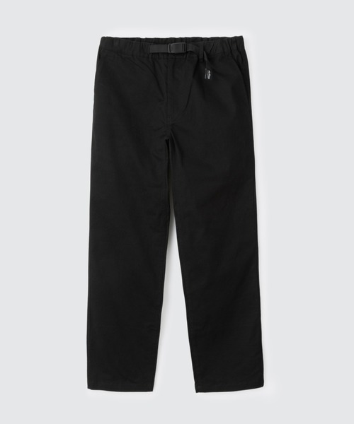 ポリウレタンを配合し、ストレッチ性を持たせたコットンツイルを使用したパンツ。洗いをかけ、フェード感を出している。ウェービングベルトとガゼットクロッチがポイント。
