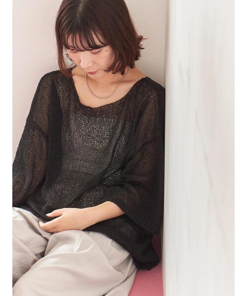 ざっくりとした編地でラフに着こなせるシアーニット。 落ち感のあるシルエットになっており、スタイリングにこなれ感を演出します。 お手持ちのキャミソールやカットソーをレイヤードした着こなしがおすすめ。 デイリーユースやタウンユースにも大活躍するアイテムです。 ※商品画像は、撮影環境やお客様のご利用のPC・スマートフォンのモニター環境などにより実物と色味に差異がある場合がございます。