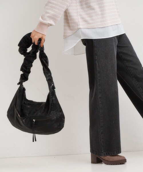【デザイン】 ショルダーの紐を調整してフリルの様なデザインにすることができます。 大きめのサイズなので、荷物がたっぷり収納できます。 本体にはムラ感のある素材を使用しています。 傷の様に見える場合もありますが、素材の特徴になります。 【仕様】 ・ポケット数:内側×2 外側×2 ※照明の関係により、実際よりも色味が違って見える場合があります。また、パソコン・スマートフォンなどの環境により、若干製品と画像のカラーが異なる場合もございます。 店舗へのお問い合わせ商品番号:C70-04067 ●製品寸法: 00:高さ28cm 幅(上部)34.5cm 幅(下部)38.5cm マチ2cm ショルダー対応サイズ~110cm 備考:重量:約360g