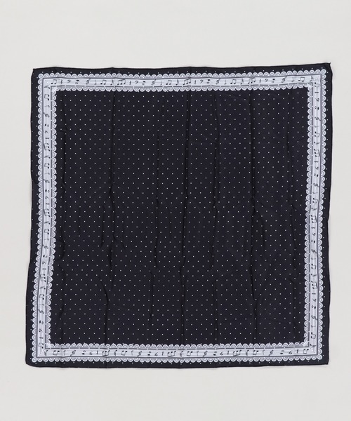 SPINNS(スピンズ)の「サテンスカーフ/ドット音符/ウィッシュコア(バンダナ/スカーフ・レディース・ホワイト/ブラック・ONESIZE)」の1枚目の写真