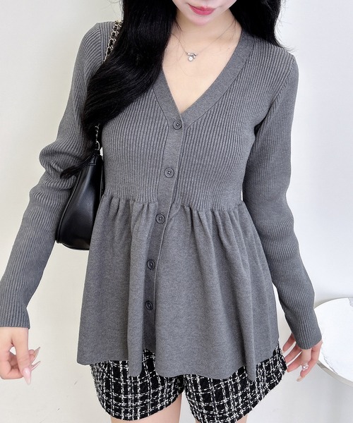 【バスト下からふわりと広がるペプラムシルエットで大人キュートに】 異なる編地を組み合わせ、表情をプラスしたニットカーディガンです。 すっきりと開いたVネックで顔周りもすっきり。 トップスとしても羽織りとしても着まわせます。 きちんと感のあるアイテムなのでオンオフ問わずに活躍。 合わせやすい落ち着いたカラーが揃っています。 ・ニット製品のため生地に伸縮性があり、サイズに若干の誤差が生じる場合がございます。予めご了承くださいませ。 【以下アイボリー参考。カラーにより多少の誤差あり】 ・透け感:やや透ける ・伸縮性:あり ・生地の厚さ:普通 ・裏地:なし
