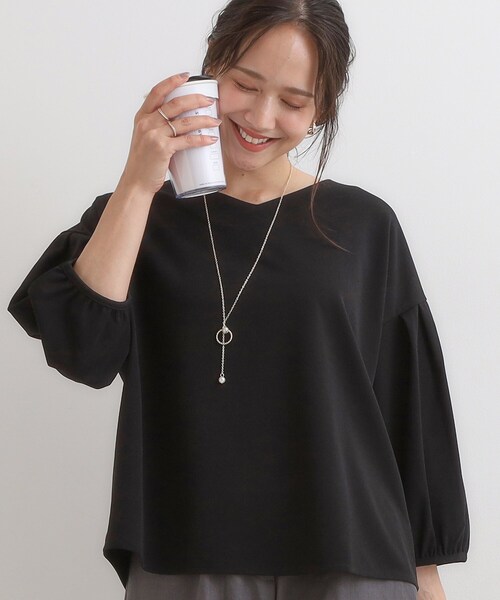 ネックレス付きのデザイントップス【デザイン】すっきりとしたVネックに、タックの入ったボリューム袖が印象的な1枚。きれい見えのシンプルなデザインでお仕事着にも活躍します。ネックレス付きで華やかさもプラスされます。【スタイリング】インでもアウトでもスタイリングが決まるので、色々なシーンに合わせて印象を変えられます。テーパードパンツを合わせていただくと、お仕事にもマッチする着こなしをお楽しみいただけます。ワイドパンツやナロースカートと合わせ、ボトムにインして着ていただくとすっきりとした印象になりおすすめです。【素材】さらりとした肌触りのカットジョーゼット素材。※照明の関係により、実際よりも色味が違って見える場合があります。また、パソコン・スマートフォンなどの環境により、若干製品と画像のカラーが異なる場合もございます。モデル情報:身長163cm B81 W59 H88 着用サイズ:02(M)店舗へのお問い合わせ商品番号:741-14307●製品寸法:01(S):着丈54cm B112cm 袖丈32cm 肩幅56cm ネックレス全長69cm モチーフH2cm モチーフW2cm02(M):着丈55cm B115cm 袖丈33cm 肩幅57cm ネックレス全長69cm モチーフH2cm モチーフW2cm03(L):着丈56cm B118cm 袖丈34cm 肩幅58cm ネックレス全長69cm モチーフH2cm モチーフW2cm04(LL):着丈57cm B122cm 袖丈35cm 肩幅60cm ネックレス全長69cm モチーフH2cm モチーフW2cm備考: