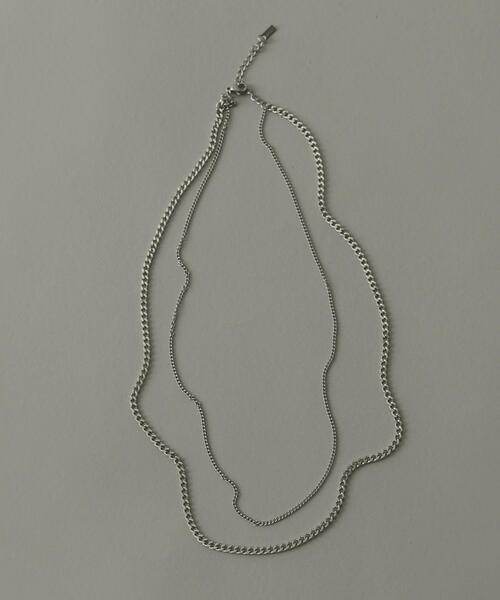【一本でスタイルが完成する、2連ネックレス】 ●異なる二本を組み合わせたデザイン ●重ね付けしたような、計算されたレイヤードスタイル ●Tシャツからニットまで、様々なトップスと好相性 表情の異なる2種類のチェーンを組み合わせ、一つにまとめたネックレス。 これ一本で、計算された首元のスタイリングが完成する優秀アイテム。 腐食に強く錆びにくいサージカルステンレスを採用した、金属アレルギーにも対応したアクセサリーです。 【2025 Autumn/Winter】【25AW】 【サージカルステンレスとは・・】 ・通常のステンレス材よりも、より腐食に強く錆びにくい。 ・医療器具にも使用されており、金属アレルギーに対応した素材。 ・お風呂などの水に触れるシーンで付けっぱなしにしても、錆びたり変色したりしにくい。 ※アレルギーの原因はさまざまです。すべての方に起きないことをお約束するものではありませんので、予めご了承くださいませ。また、症状が出た場合は直ちに使用をお控えください。 ※アレルギー体質の方や体調が低下している方など、かぶれることがありますので十分にご注意ください。 ※サージカルステンレスは、腐食に強く錆びにくい特徴がございますが、製品状態を永久保証するものではございません。使用状況によって劣化は異なりますので、ご了承ください。 ※その他お取り扱いに関しましては、商品に付属のアテンションタグをご覧ください。 総重量 : 約14g ※商品画像は、光の当たり具合やパソコンなどの閲覧環境により、実際の色味と異なって見える場合がございます。予めご了承ください。 ※商品の色味の目安は、商品単体の画像をご参照ください。 ▼お気に入り登録のおすすめ▼ お気に入り登録商品は、マイページにて現在の価格情報や在庫状況の確認が可能です。 お買い物リストの管理にぜひご利用下さい。 -