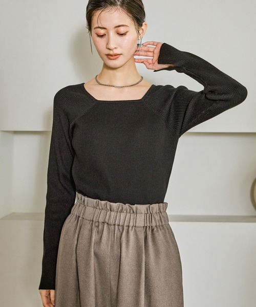 毎年人気のリブ編みの伸縮性のあるベーシックなハイゲージニットプルオーバー。スクエアネックとクルーネック前後で着用いただける2WAY仕様の1枚です。やさしくフィットしつつも、ボディラインをひろいにくいリブ幅やサイズ感もポイントに。デコルテを綺麗に見せてくれ、袖先にスリットを入れたことで抜け感もあり1枚着としても使いやすいデザインのアイテムです。【素材】キレイな表面感が特徴の素材。なめらかでチクチクしない、柔らかな肌触りが魅力のリブ編みニット。【スタイリング】ベーシックなデザインなので、合わせるボトムスを選ばずお使いいただけるアイテムです。ほどよい生地感なので、サロペットや羽織のインナーにもおすすめ