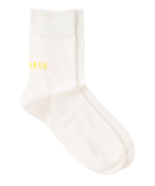 【Tabio(タビオ)】Tabioとのコラボレーションソックス。バックに「LOVELESS」のロゴを編み地で入れました。白には青山店の象徴である階段をイメージした黄色、黒にはLOVELESSのストアカラーであるグレーで表現し、ローカットの靴を履くとちょうど見える位置に配しました。毛羽立ちが少なく、肌触りのいい糸を使用し、程よい肉厚の生地感に仕上げました。■Tabio(タビオ)タビオは1968年の創業以来、50年以上にわたって「靴下をはいていることを忘れてしまうような第2の皮膚」をめざし、追求してまいりました。繊細なはき心地の靴下をつくるために、商品は、長年の経験と技術を積んだ日本の職人たちがひとつひとつ丁寧に 編み立てています。国内だけでなくパリ、ロンドン、中国などにも展開中で、Made in Japanのはき心地とデザイン性は、海外でも高い評価を得ています。組成:綿79% ナイロン20% ポリウレタン1%━━━━━━━━━━━━━━━━━━━━━━━━━━お買い物をお楽しみ頂くために<商品のお気に入り登録>完売カラーの再入荷通知など、お得な情報をお届けします。<注意事項>この商品はサンプルでの撮影を行っています。実際の商品とイメージが異なる場合がございます。撮影環境により、光の当たり具合で色味が違って見える場合があります。あらかじめご了承下さい。
