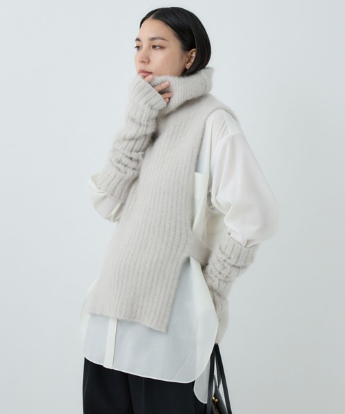 2025 WINTER COLLECTION ーーー 今期も登場。希少な原料"ブルーフォックス"を使用したニット -design- 贅沢にもブルーフォックス100%を使用したビブです。 ジャケットの中やコートにに忍ばせるだけで、まるで1枚ニットを着用しているかの様になる便利アイテム。 もちろん1枚表にスタイリングするのも今年っぽく着用出来ます◎ インの提案だけでなくジャケットの上からビブを合わせても今年は気分で楽しいスタイリングでおすすめです! ▼同素材の他アイテムはこちら▼ ・ブルーフォックスクルーニット (品番 589889) ・ブルーフォックスアームウォーム (品番 589903) ・シャギージャコート(品番 579578) -how to care- こちらの商品はドライクリーニングをお願いしております。 ーーー -fabric- ブルーフォックスは冬になるとツンドラ(凍土)の雪や氷に同化するような淡く青みがかったペールグレー色の毛をまといます。 その原料を染色せず、原色のまま使用しています。 夏になると、土や木々に身を隠す茶色の毛に生えかわるので、冬の期間にしか現れない希少な原料となります。 ********************* 透け感:透けない (ブルーフォックス(07)で計測しています。) 伸縮性:あり (ブルーフォックス(07)で計測しています。) 生地の厚さ:普通 (ブルーフォックス(07)で計測しています。) 裏地:なし ※こちらは参考情報となります。 ********************* 【Chaos(カオス)】 “カオス”の時代にあっても、自由かつインディペンデントな感性を大切にする大人の女性たちへ。素材やディティールにこだわったオリジナルと国内外で買い付けたユニークかつアーティな感覚のセレクトをミックスした発信をしています。 “大人の為の上質な日常着” For independent, free-spirited women navigating the “Chaos” of our time. Our original items are crafted to the finest detail with carefully selected materials. We also offer the most unique and artistic pieces collected from Japan and the world. “Fine clothes for the Modern Woman” ※商品の取り扱い方法につきましては、タグ等に記載されている「取り扱い上の注意」「洗濯表示」をご確認ください。 ※サンプルにて撮影をしておりますので、実際の商品とは仕様や加工・サイズ等が若干異なる場合がございます。 ※屋外での撮影画像は、光の当たり具合で色味が違って見える場合があります。あらかじめご了承ください。なお商品の色味は、スタジオ撮影の画像をご参照ください。 ....................≪INFORMATION≫...................... ▼商品のお気に入り登録をおすすめします▼ ♡をクリック!完売カラーの再入荷や、ラスト1点の通知、セールの際の通知を受ける事ができます。 ▼ ブランドのお気に入り登録 ▼ 新商品や再入荷など、ブランドのお得な情報をいち早く受ける事が出来ます。 こちらもぜひご登録ください。