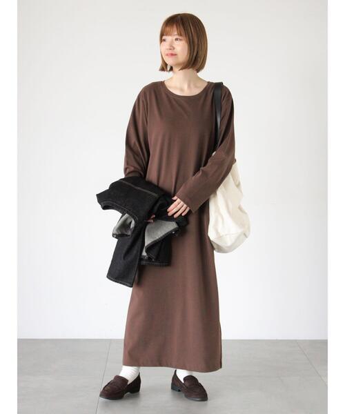 滑らかで優しい肌触りのロングワンピース。ベーシックなクルーネックのデザインは、スタイリングに程よくカジュアルな印象を与えます。背面に施されたバックスリットがさりげない抜け感をプラス。1枚で着用したり、お手持ちのカーディガンとレイヤードした着こなしがおすすめです。※商品画像は、撮影環境やお客様のご利用のPC・スマートフォンのモニター環境などにより実物と色味に差異がある場合がございます。