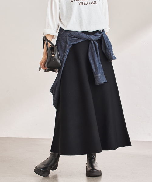 今季取り入れたいフレアーニットスカート。横に編むことで、立体的で美しいフレアーシルエットを実現。ニットならではの柔らかさと落ち感が、動くたびに女性らしいニュアンスを引き立てます。カジュアル素材で程よく抑えたバランスが魅力で、デイリーに取り入れやすい一枚に。**********************透け感:なし裏地:なし伸縮性:あり光沢感:なし生地の厚さ:普通**********************※自重伸び(型崩れ)することがあるので、保管の際はハンガーは使用せず、たたんで保管をしてください。※取り扱いについては、商品についている品質表示でご確認ください。※こちらの商品は、FRAMeWORK での取り扱いになります。直接店舗へお問い合わせの際は FRAMeWORK 店舗へお願い致します。※照明の関係により、実際よりも色味が違って見える場合があります。またパソコン・スマートフォンなどの環境により、若干製品と画像のカラーが異なる場合もございます。予めご了承の上ご注文ください。※商品の色味は、商品アップ画像をご参照ください。本体:手洗い可能