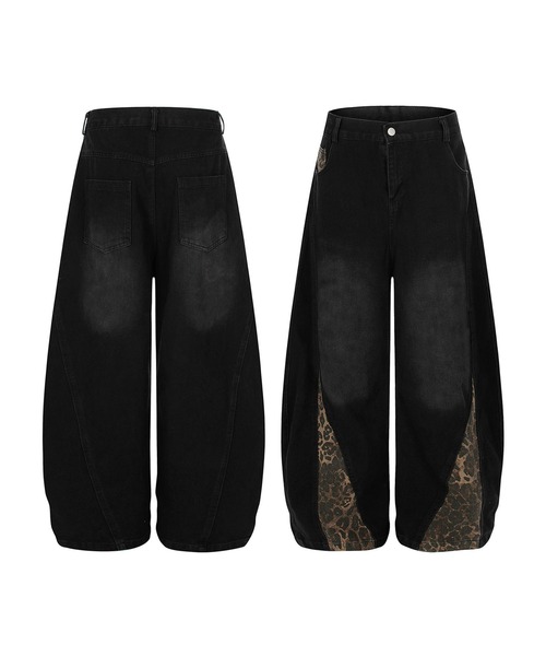 デニムをベースに、フロントとサイドへ大胆にレオパード柄のパネル切り替えを施したワイドパンツ。 ユーズド感のあるデニムパンツの中にアニマル柄を差し込むことで、無骨さと遊び心のある存在感あるデザインに仕上がっています。 ボリュームのあるワイドシルエットで、ストリートから古着MIXまで幅広く対応。裾に向かって細くなるコクーンシルエットで重くなりすぎずすっきりと着こなせます。レオパード柄は部分的に配置されているため、派手すぎずコーデに取り入れやすいのもポイント。 無地のオーバーサイズスウェットやフーディでパンツの柄を主役に。 デニムジャケットやレザーブルゾンでハードに、スタジャンでストリートライクに。 スニーカーで軽快にまとめても、ブーツで無骨さを強調しても◎ トップスはシンプルに抑え、パンツのレオパードをアクセントとして活かすとバランスの良いスタイリングになります。 公式instagram>>@hook_tokyo 新商品の紹介や、再入荷の情報などは更新中! 【お買いものをお楽しみいただく為に】 ▼商品のお気に入り登録 完売カラーの再入荷通知や、ラスト1点の通知、セールの通知も受け取ることができます。 ▼ブランドのお気に入り登録 新商品や再入荷など、いち早くブランドのお得な情報を受け取ることができます