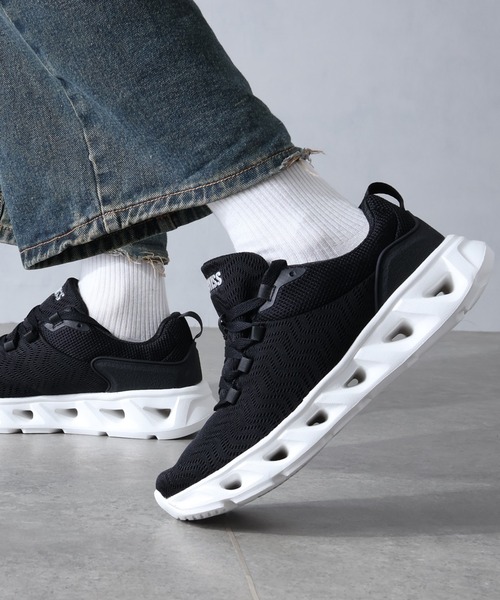 The California Sports Company"K-SWISS" アメリカ発の老舗スポーツブランド。機能性とデザイン性を兼ね備え、タウンユースからスポーツシーンまで幅広く対応。 軽量&クッションソールで快適。デイリーもスポーツも支える万能スニーカー。 -デザイン・ディテール- 個性的な肉抜きデザインのソールが目を引く一足。軽やかな履き心地を実現しながらも、安定感のあるフォルムで足元をしっかりサポートします。 シンプルなホワイト、シックなブラック、アクセントの効いたブルー×レッドの3色展開。 通気性のあるニットアッパーが足を柔らかく包み込み、長時間の使用でも快適。タウンユースはもちろん、ジムやランニングなど幅広いシーンで活躍します。 -ファブリック- アッパーには軽量で通気性の高いテキスタイルを採用し、ムレにくく快適な足元をキープ。 ライニングも柔らかな繊維素材で、靴擦れしにくく足当たり良好。 アウトソールはEVA素材を使用し、軽量性とクッション性を確保。特徴的なソールデザインが衝撃を吸収し、歩行時の負担を軽減します。 ■K-SWISS/ケースイス スイス人のアート・ブルナーとアーネスト・ブルナー兄弟が米国カリフォルニア州に移住し設立した『K-SWISS』(ケースイス)。テニスシューズに世界で初めてレザーを使用。シンプルで高機能かつスタイリッシュなデザインを追求しその完成度から世界中のテニスプレイヤーからの信頼を得ることに成功。 ブランド誕生から40年以上を経て「The California Sports Company」として、カジュアルからパフォーマンスのシューズ、アパレルをデザイン、生産する総合スポーツブランドに成長しています。 ★商品のお気に入り登録→【カートに入れる】右側のハートマークをクリック 完売カラーの再入荷通知や、ラスト1点の通知、セールの通知も受け取ることができます。 ※店頭及び屋外での撮影画像は、光の当たり具合で色味が違って見える場合があります。またご覧いただきますモニターや使用環境により実際の商品と多少色味が異なって表示される場合がございます。 予めご了承をお願いいたします。